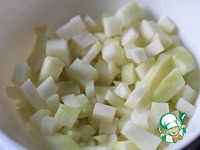 Кольраби вымыть, очистить и нарезать на небольшие кубики. |