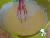 Яйцо слегка взбить венчиком и добавить в сметанно-сахарную смесь. |