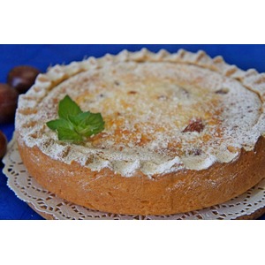 Готовый пирог остудить в форме, затем снять бортик и обсыпать пирог сахарной пудрой. |