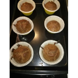 Выпекаем в разогретой до 180С духовке 20 минут, а затем 5 минут при уменьшенной температуре до 150С. У меня вышло 17 маффинов. |
