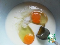 Смешать до однородной массы все ингредиенты и половину муки. |