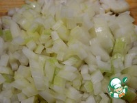 Пока горох остывает режем лук и обжариваем на растительном масле с солью и перцем. Масла не жалейте, им мы потом польём наши "колодки". |