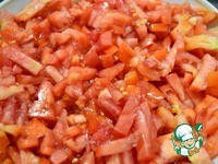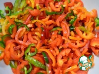 Начинаем варить пшено. В этот раз я варила в мультиварке на режиме "Каша" 40 минут. Пока варится пшено, режем мелко болгарский перец. |