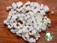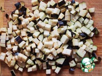 Нарезать кубиками. Затем поместить их в холодную, подсоленную воду на 20 минут, чтобы ушла лишняя горечь. |
