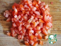Помидоры помыть, порезать кубиками, добавить к овощам, хорошо перемешать. |