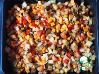 Хорошо перемешать и готовить в духовке, при тех же 200 градусов, 20-25 минут, иногда перемешивая. |