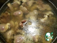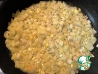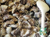 Пока отвариваются сердечки, на раскаленную заранее сковороду наливаем немного растительного масла, кидаем лук. Сразу его слегка подсаливаем, чтобы он не подгорел. Жарим до прозрачности. |