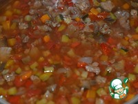 Добавить в сотейник остальные овощи, кроме перца чили, чеснока и зелени. Обжаривать 5 минут, помешивая. Добавить молотый кориандр. |