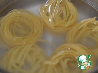 В тарелку выложить немного лапши, затем добавить основу. Густоту регулируем по своему вкусу. Сверху добавить чайную ложку чесночного масла и посыпать укропом. |