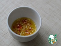 Чеснок и перец чили мелко нарезать, смешать с оливковым маслом. |