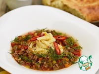 Описание: Сегодня я готовила лагман в посуде Zepter. Это конечно же не классический рецепт, но именно так его готовят у нас. Подают как первое блюдо. В лагман используют сезонные овощи. А если это овощи со своего огорода и приготовленные в посуде Zepter без соли и масла, то блюдо становится просто идеальным. Сохраняются все полезные вещества. Блюдо сочное, яркое по вкусу и внешне.