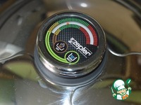 Накрыть кастрюлю крышкой, поставить на средний огонь. Когда стрелка термоконтроллера дойдет до середины зеленого поля, уменьшить огонь до минимума и готовить 20 минут. |