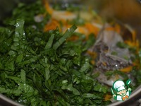 Зелень вымыть, нарезать, добавить в кастрюлю, готовить еще 2 минуты. Затем открыть крышку, добавить горячей воды, регулируя густоту борща. |