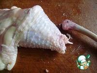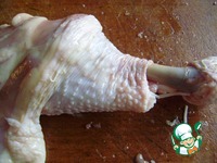 Теперь берем левой рукой окорочок, а правой крутим кость по часовой стрелке или против, пока не услышите хруст от ломания костей. |