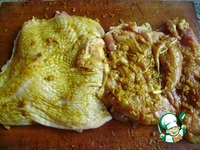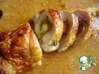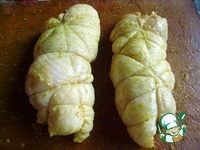 Сворачиваем мясо рулетом. В это раз готовила из двух окорочков. |