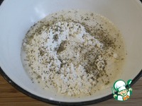 Делаем лепешки. Муку с разрыхлителем и солью просеять, добавить остальные ингредиенты. |