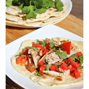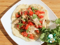 Выкладываем на лепешки куриные грудки, на грудки сальсу, посолить и подавать! |