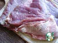 Кусок свиной пашины без кожи промыть и хорошо обсушить. Выровнять толщину мяса. |