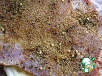В ступке истолочь пряности с щепоткой соли и хорошо натереть мясо. |
