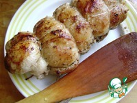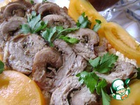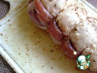 Плотно свернуть мясо в рулет и хорошенько перетянуть кулинарной нитью на манер колбасы. |