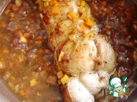 Рулет вынимаем под фольгу, а оставшиеся овощи пробиваем блендером. На гарнир я делала кус-кус. |