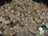 Обжариваем на растительном масле мелко нарезанный лук, затем добавляем порезанные грибочки, мелкие маслята я не режу. Обжариваем до почти полного выкипания жидкости. |
