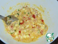 Добавить зелень, перемешать и оставить на 10-15 минут, чтобы манка набухла. |