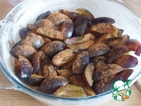 Половину хлебной массы выложить в форму, сверху разложить сливы, посыпать их корицей и толченой гвоздикой. Если сливы кисловатые, то можно посыпать сахаром (1 ст. л.). |