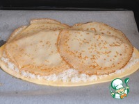 Выложить на рис два или три блинчика. |