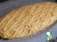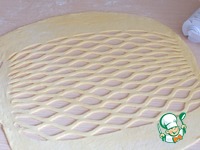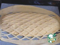 Из оставшегося теста раскатать тонкий пласт, при помощи резака-ролика для теста вырезать решетку. |