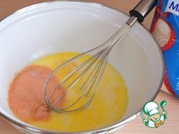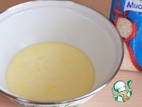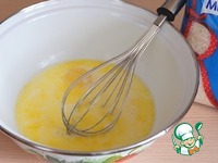 В теплую смесь молока и масла добавить два яичных желтка. |