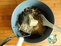 Добавим цедру и сок лимона, а также промытый изюм, всё перемешаем. Закроем сотейник крышкой и оставим на 10-15 минут для набухания изюма. |