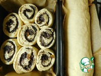 Но можно не только вкус слегка изменить, но и форму. Свернув тесто с начинкой в рулет, я разрезала его на несколько рулетиков на манер булочек "Синнабон". |