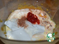 Добавить сметану, соль, перец, острый соус, горчицу и взбить. |
