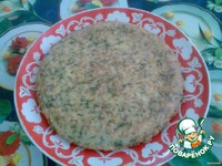 В миске перемешать яйца с бульонным кубиком и с укропом, добавить рис. Все перемешать, выложить в разогретую с маслом сковороду и выпекать на среднем огне.