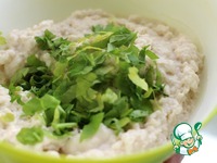 Измельчить блендером, добавить мелко нарезанную зелень. |