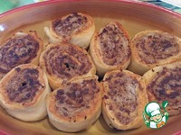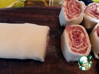 Скрутить рулет и нарезать его кусочками шириной около 4-х см. |