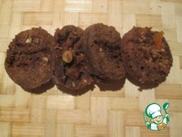 Смешать сухие ингредиенты, яйцо слегка взбить с молоком. Орехи порубить ножом, курагу мелко порезать. Соединить все компоненты. Должно получиться довольно жидкое тесто. |
