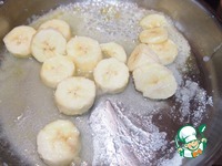 Пока варится рис, разогреть сахар на сковороде, добавить порезанный банан со сливочным маслом. Уварить до размягчения. |