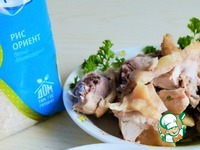 Готовую курицу вынуть, бульон процедить на сите, отмерить 1,5 л. Вновь поставить на огонь. Всыпать рис и варить 10 минут. |