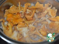 Лисички залить холодной водой и оставить на 20 минут. Затем хорошо промыть от мусора и земли. |