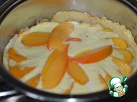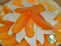В сотейник выложить тесто. Сверху разложить ломтики хурмы и брынзы, полить медом. |