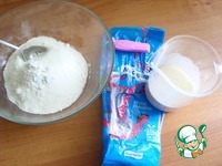 Смешиваем все сухие ингредиенты: муку, сахар, разрыхлитель, манку тщательно. |