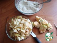 По рецепту яблоки нужно натереть на тёрке. Я не стала и порезала их мелко. |