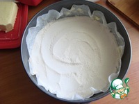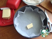 Берём форму прокладываем её пекарской бумагой. Бумагу щедро мажем сливочным маслом. |