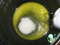 6. Тесто: Влить во взбитые желтки воду и растительное рафинированное масло. |