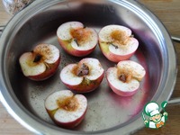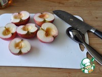Для приготовления можно брать небольшие яблоки или груши. Фрукты моем, режем пополам, вынимаем сердцевину, сбрызгиваем коньяком. Для детей - яблочным соком. |