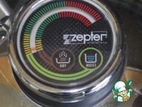 При среднем огне доводим стрелку на крышке до начала зелёного поля термоконтроллера, на это уходит около 5 минут. После этого убираем огонь до минимального (1 деление) |