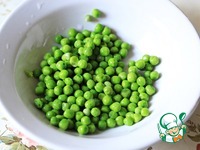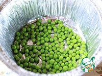 Замороженный зеленый горошек обдать кипятком. |