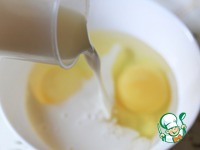 Яйца разбить в миску, влить к ним молоко. |